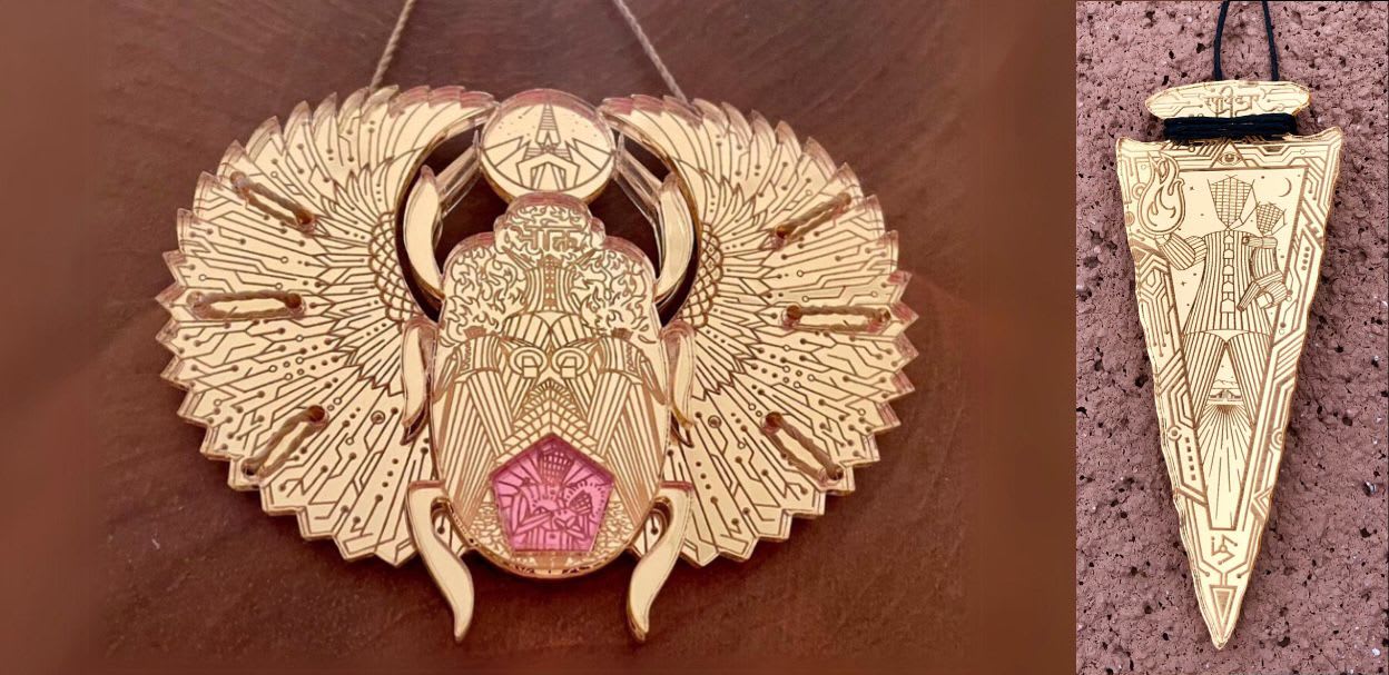 My "Devotion" Talisman (above left) is currently part of a permanent "Jewelry of Burning Man" exhibit at the Smithsonian Museum AND... has now been offered the opportunity to be placed aboard a satellite doing an "observational fly-by" of an asteroid before shooting off into the infinity of deep space.